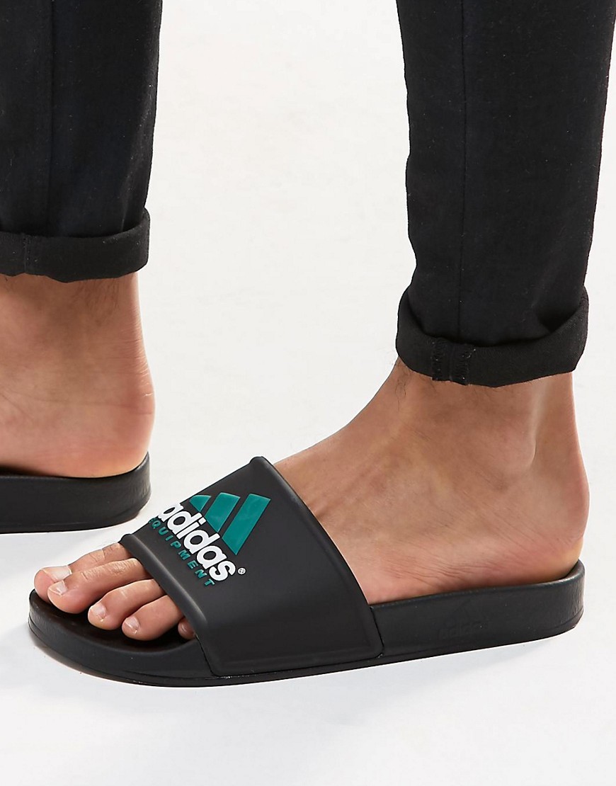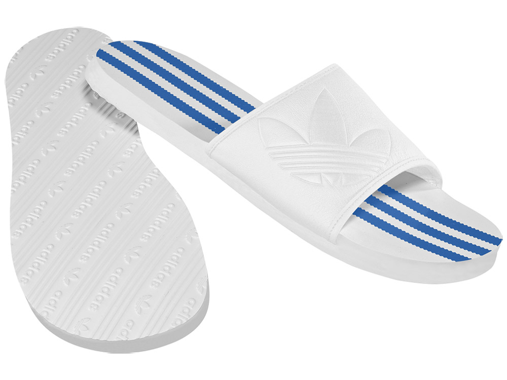 The world famous brand Adidas produces stunning rubber slaps for fashionable ladies who choose comfortable shoes from high-quality materials. Rubber models of the company are available in classic and bright colors. Products of mint, blue, golden and fuchsia look very rich. As a rule, slaps are issued on a sole with a relief that creates an anti-slip effect.