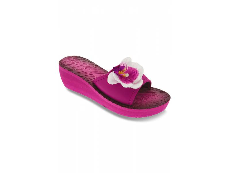 The Italian brand produces stunning models, decorated with a spectacular flower on the top. Fashionable and feminine slaps have a high and dense sole and a massage insole with a relief ornament. Stylish couples from De Fonseca are the perfect solution for an incendiary beach party!