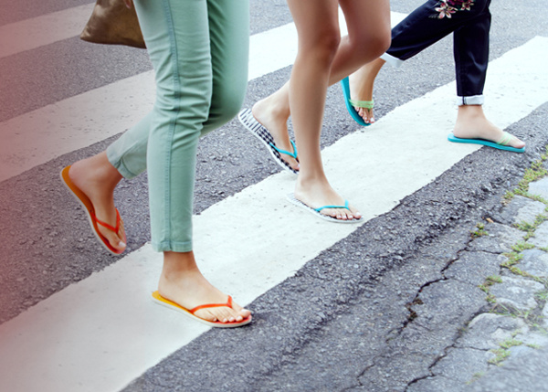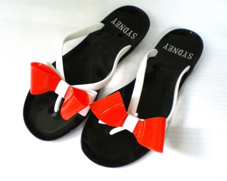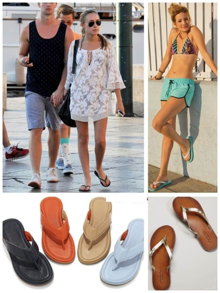 - Rubber flip flops look great with swimsuits for the beach and pool.