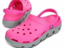 - Croxes are lightweight square heels without heels, they have a round closed nose, a thick sole and a screwed strap for fixing the heel. The best option for footwear for movement on water is not found. They are comfortable and do not fall off your feet while walking. This is an excellent choice for children, whose legs should be protected during outdoor games on sand or in water.