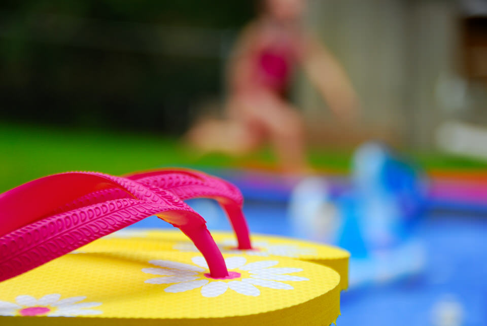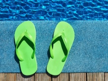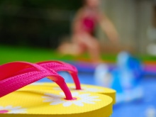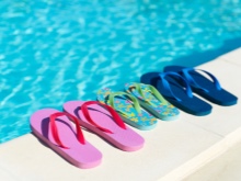 When buying, pay attention to the sole of the shale. It must be grooved to prevent slipping on the wet tile floor of the pool.