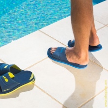 Firstly, pool shoes perform the most important function - protection against falls and foot damage. Everyone knows that the pool area and adjacent areas have a tiled floor, which is rather slippery. Slates make walking around the pool area safe, because falling on slippery tiles inevitably leads to injuries to the limbs and head. In addition, they will reduce the risk of fungal diseases, which are often infected in the pools.