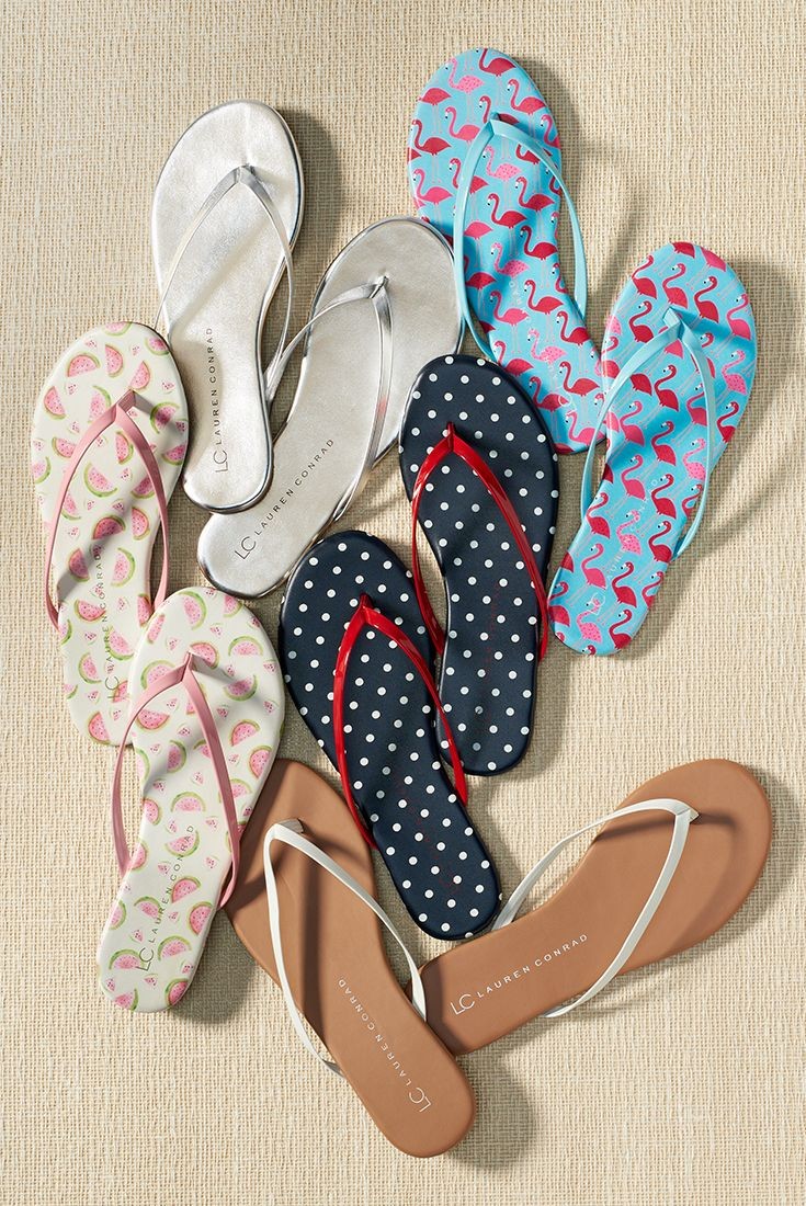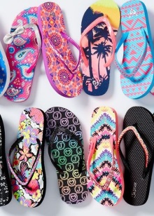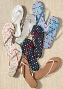 - Flip Flops. This model of shoes "came" to us from Asia and is a flat comfortable sole and thin straps, one of which is attached between the toes. Flip flops are as open as possible, so they require a perfect pedicure.Manufacturers offer us a huge selection of this shoe, decorated with straps, lacing, rhinestones, artificial flowers, which allows you to combine it not only with beach outfits, but also with clothing for urban images.