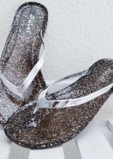 In addition to these materials for the production of shale used silicone, transparent and colored plastic. Many models are equipped with cork, wood and wicker wedges or flat soles.