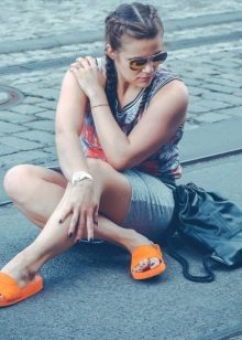 The classic model of shale looks perfect on the beach, and more modern and interesting models, for example, on the platform, are suitable for urban life. Such slates will harmoniously fit not only into a casual or sports look, they will perfectly suit a dress made in a romantic style. Especially if the slates are decorated with flowers or rhinestones.