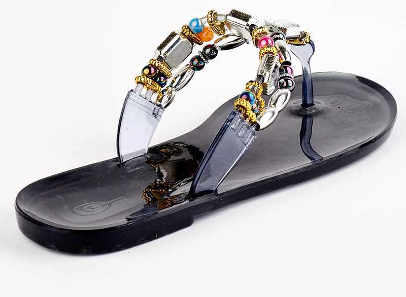 Universal model suitable for the beach, and for a picnic in nature, and for a walk around the city. These "Vietnamese" are made of varnished polymers and decorated with rhinestones, beads, sequins, pieces of lace and other decorations.