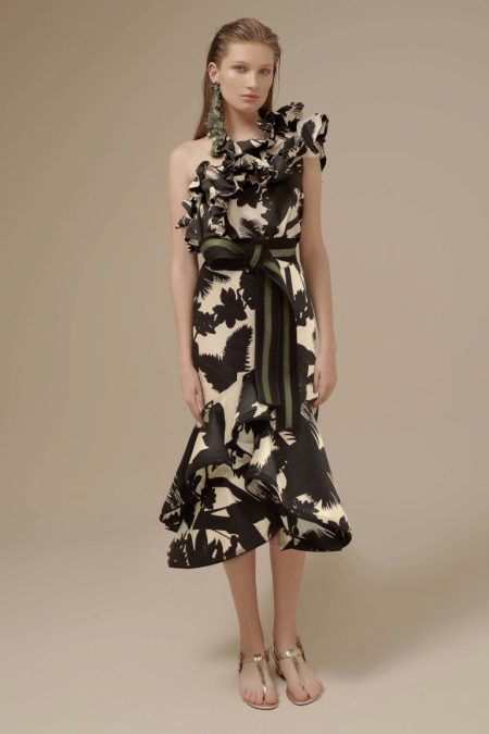 Shales can also be extravagant. For example, like this model, decorated with a “leopard” print and thin shiny straps. A great option for an outfit, made in the same style.