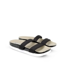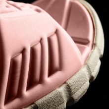 Two famous brands have released spectacular slippers that are to the taste of true lovers of sports chic. The original product consists of two textile lines that are connected to a rubber sole. Shoes behaves well on wet surfaces: molded insole keeps the foot in a safe anatomical position.