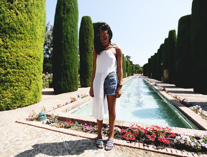 Branded summer shoes perfectly in harmony with women's shorts made of denim or synthetics. Upstairs you can wear a light top or a tank top. To complement the light image, you can use ordinary sunglasses.