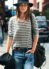 A dark accessory looks great with casual casual outfits. A set of jeans and a shirt or a sweater will look very harmonious. The hat perfectly complements the set with jeans in both male and female form.