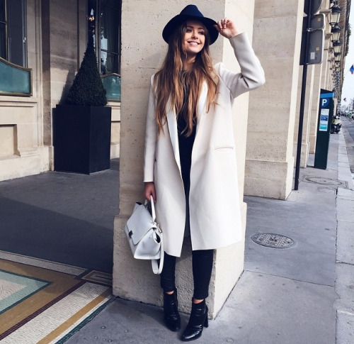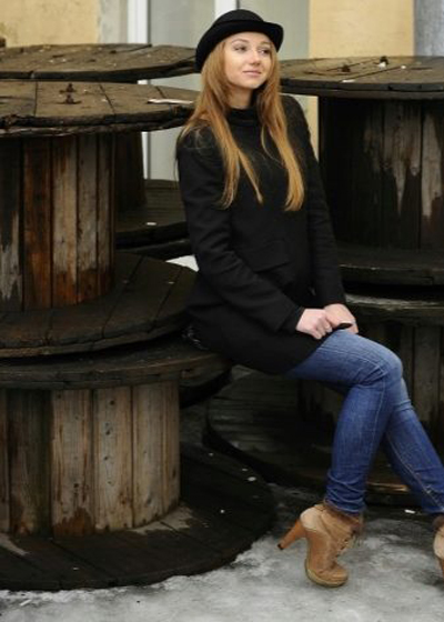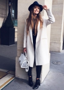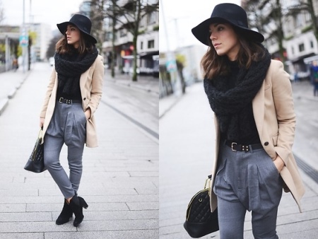 For a demi-season, a set of dark headgear and a classic coat is perfect. Outerwear can be monochrome or color. You can complement the romantic image with the help of a fashionable bag, a backpack in the color of a coat or a light neck scarf.