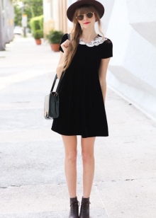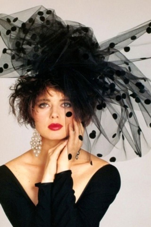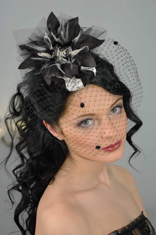 The combination of a black headdress and a dark dress looks very womanly and gracefully.