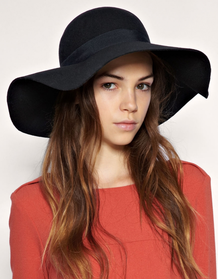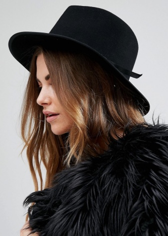 The elegant hat of classic black is the perfect complement to the feminine look. Such an interesting accessory does not go out of fashion for many years. He gained wild popularity due to its versatility.