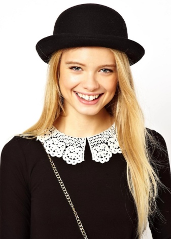 Lingerie and accessories in retro style are very popular lately. This also applies to ladies' hats. To create a light and romantic look, you can choose a round model with small fields and a feminine dress. This headpiece looks harmoniously on the fragile fashionistas with a neat face.