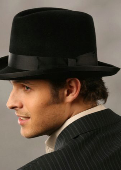 The most common and popular male model is the homburg hat. This fashionable product is equipped with not too wide brim and the upper part (crown) with a small recess. As a rule, such a model is made of soft raw materials, so you can wear it as you like.