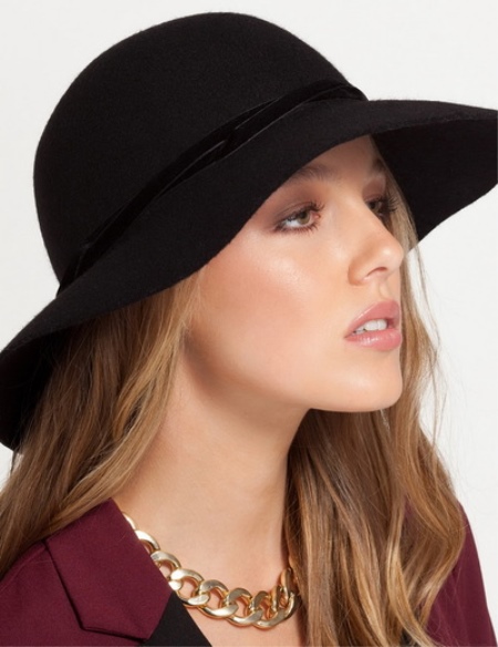 Any fashionista can choose a beautiful and original model for herself. At the moment there are a large number of varieties of black hats. They can have a different width of fields, the structure of the crown and a different decor. Let's sort the most popular copies.