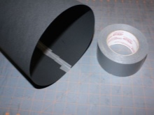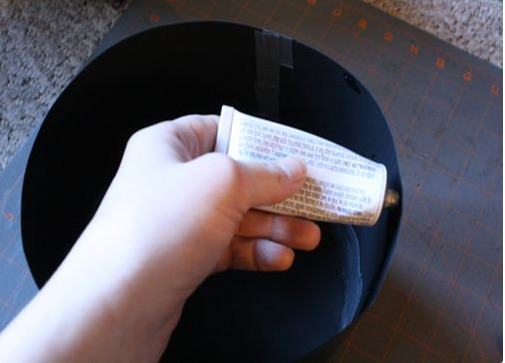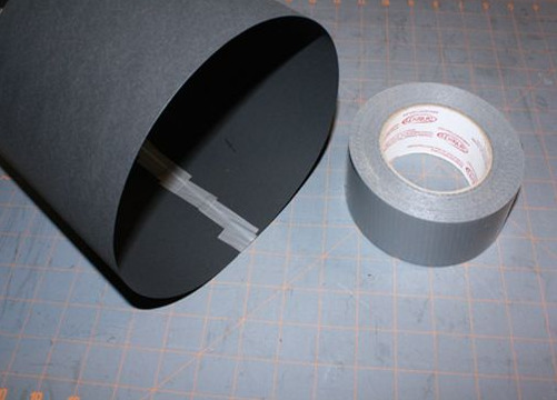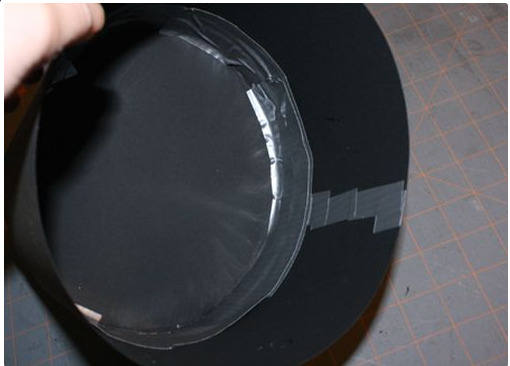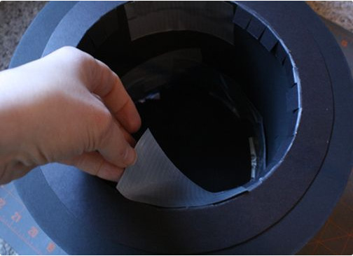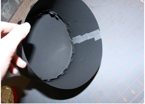 - Cut a rectangle out of cardboard, which is equal in length to the diameter of the head, and a couple of centimeters are added to bends and seams. You can choose any width. With the help of transparent tape it is necessary to connect the edges of the rectangle and please the hollow cylindrical figure.
