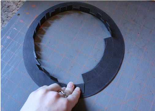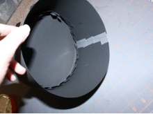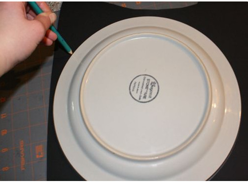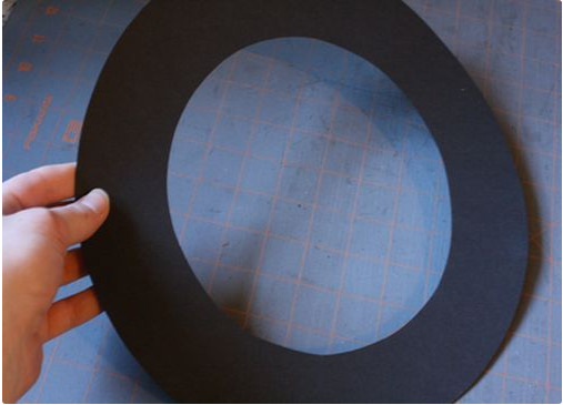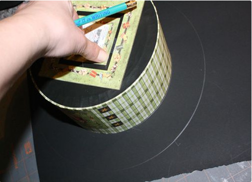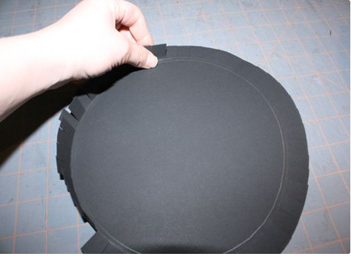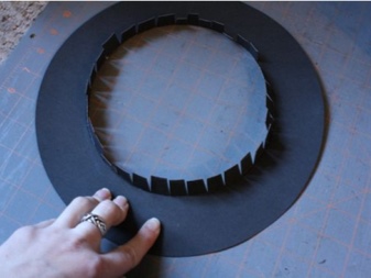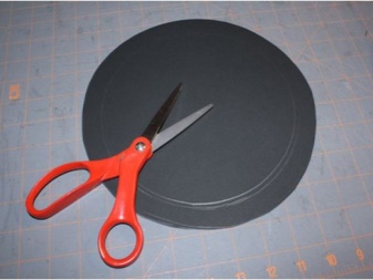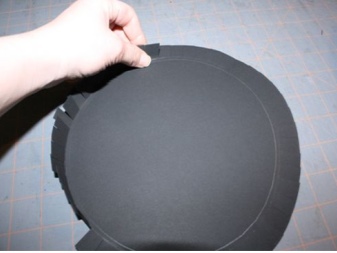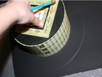 - Then you need to think about creating a hat field. To do this, draw a circle on the cardboard that is equal to the upper circumference of the cover. After around it, you need to hold another circle, already larger in diameter, and cut both circles so that the ringlet turns out.