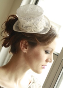 - Wedding image - many brides prefer to use this headdress as a detail of their festive image. Such hats can be decorated with a veil, feathers, a small veil, rhinestones, flowers and other decorations, and can also be the right size and be smaller than the head size to give an image of extra lightness, fragility and femininity.