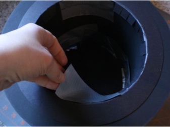 - On the inside of the cylinder - the one that will contact directly with the head - it is necessary to glue a strip of fleece. Then varnish the hat and add decorations (if required).