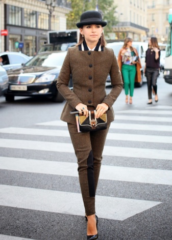 - A trouser (or skirt) suit of classic style is the original version of the combination, suitable for a party, a solemn, even corporate event. With this image it is necessary to minimize all accessories and jewelery.