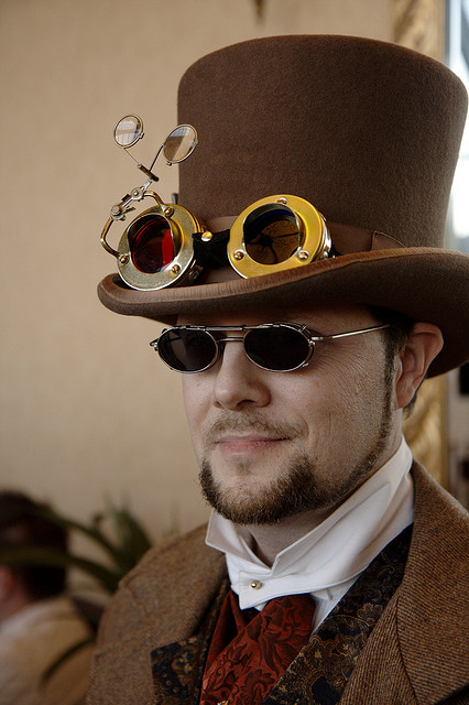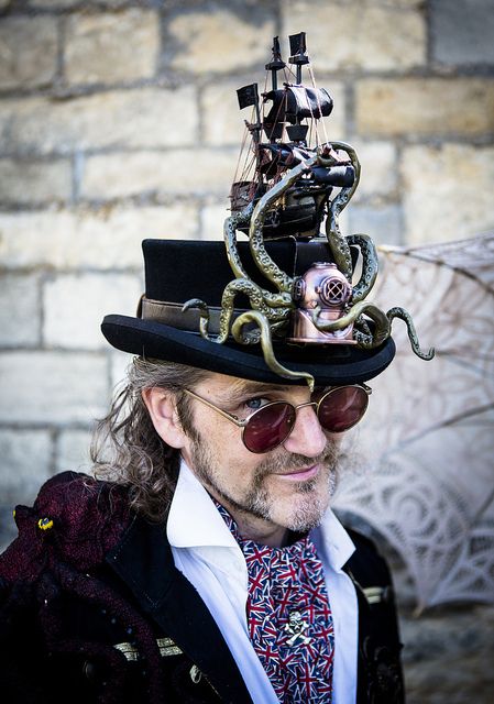 Now the cylinder is an integral part of the dress of such a peculiar direction in art and clothing, like steampunk. Steampunk - fashion combines elements of the wardrobe of the Victorian era and the so-called mechanical style.