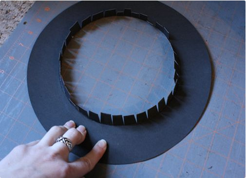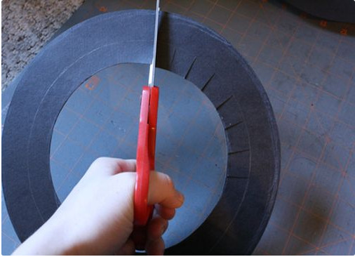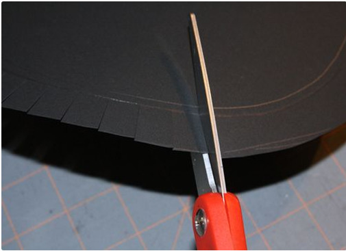 - Cut the last drawn circle and make small notches to the level of the first circle - create the so-called fringe. Fold this fringe inside the small circle.