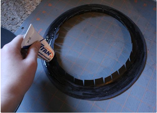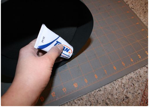 - On the fringe gently apply glue and attach a circle to the bottom of the cylinder. For greater efficiency, you should glue the bottom with adhesive tape.