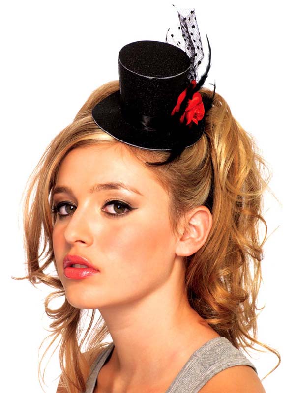 - A casual look with such a hat is extremely extravagant and attractive. A black or red top hat goes with a short blazer, mini skirt and stilettos. This image is suitable for visiting a restaurant, a fashionable party or a fun birthday party.