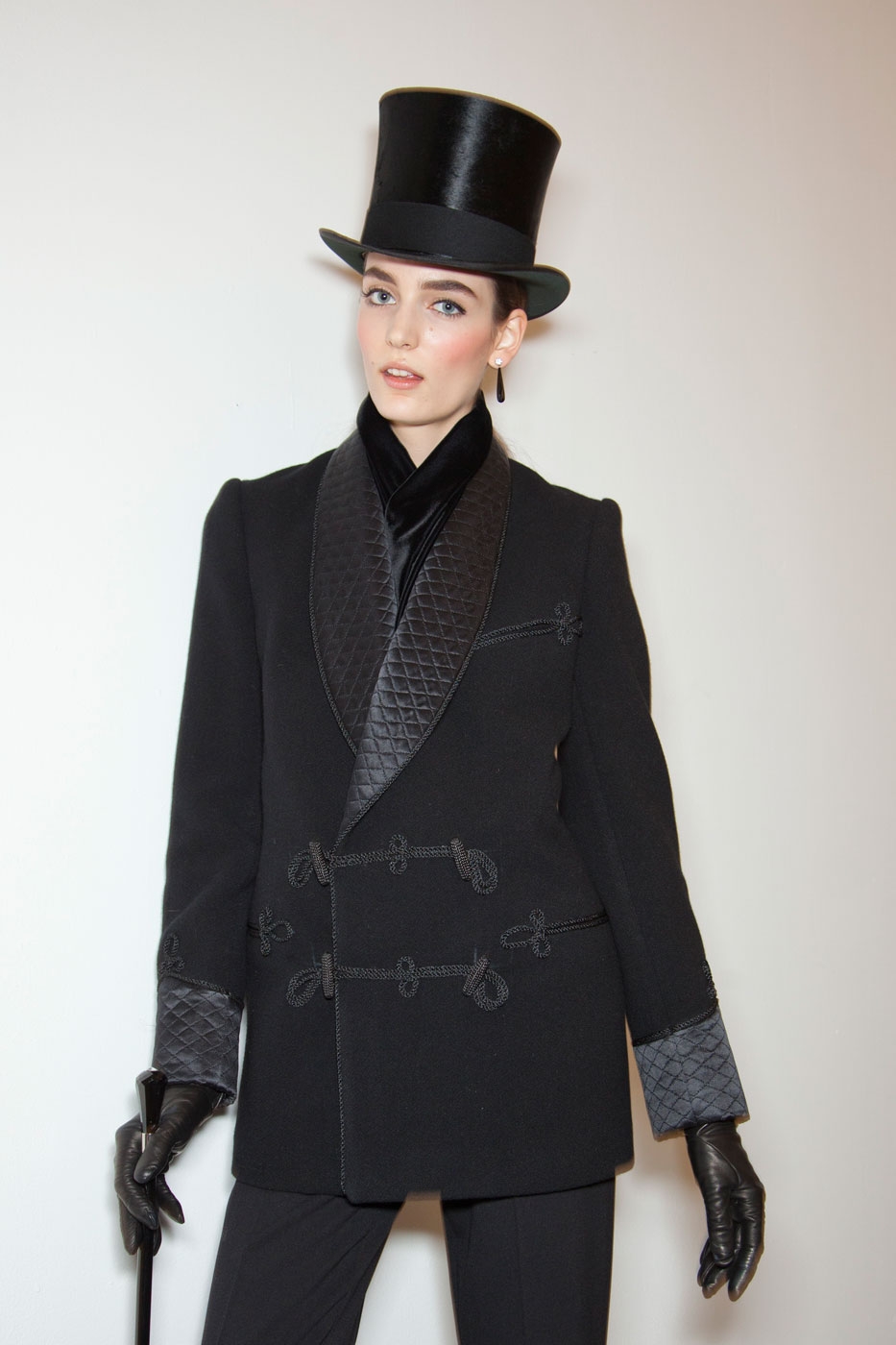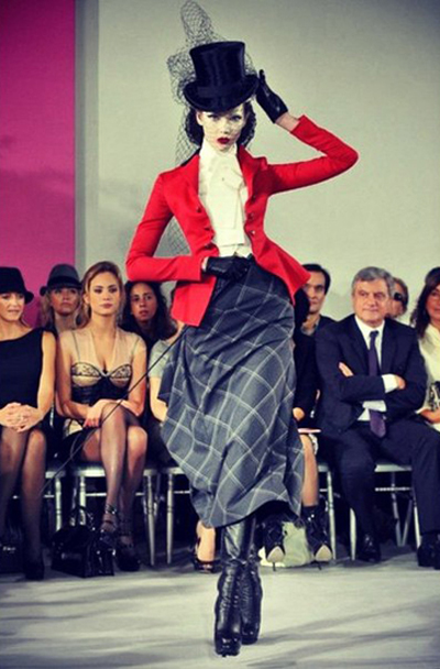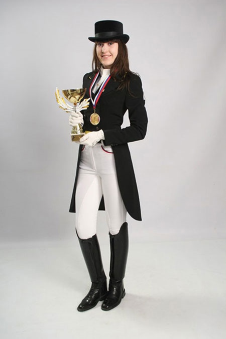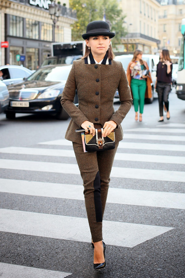 - Hippodrome outfit is a combination of an elongated strictly jacket with narrow trousers and high boots that look like a knee-high. In this form, you can attend horse racing or an event associated with equestrian sport. Also, this image is suitable for a masquerade or a costume party.