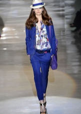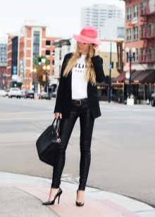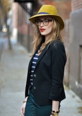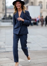 To create an elegant business look, you can choose a classic suit consisting of a strict jacket and trousers. Under the jacket you can wear a light shirt or blouse. The hat is recommended to choose the color of the suit or shirt.