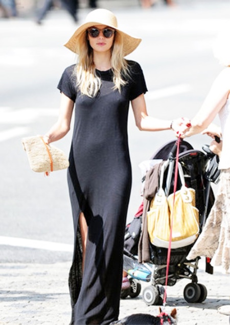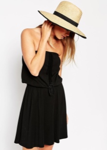 The light summer combination of a long sundress with a straw hat looks very harmonious.
