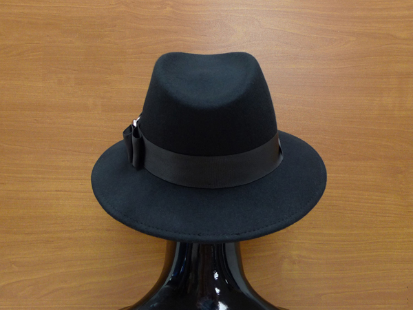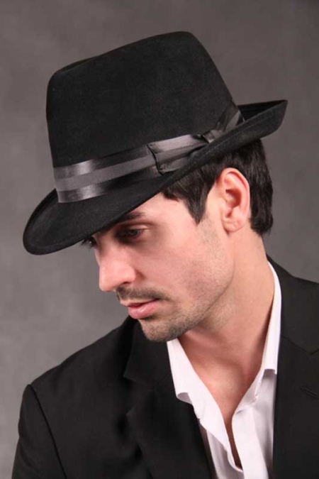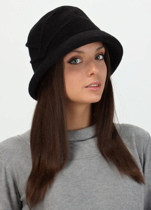 This elegant hat was originally intended for the stronger sex (like most hats at the time). According to the gentleman’s etiquette with a lady, the accessory had to be removed with three fingers, from which the very dents on the crown and side parts appeared. Such an interesting design is relevant to this day.