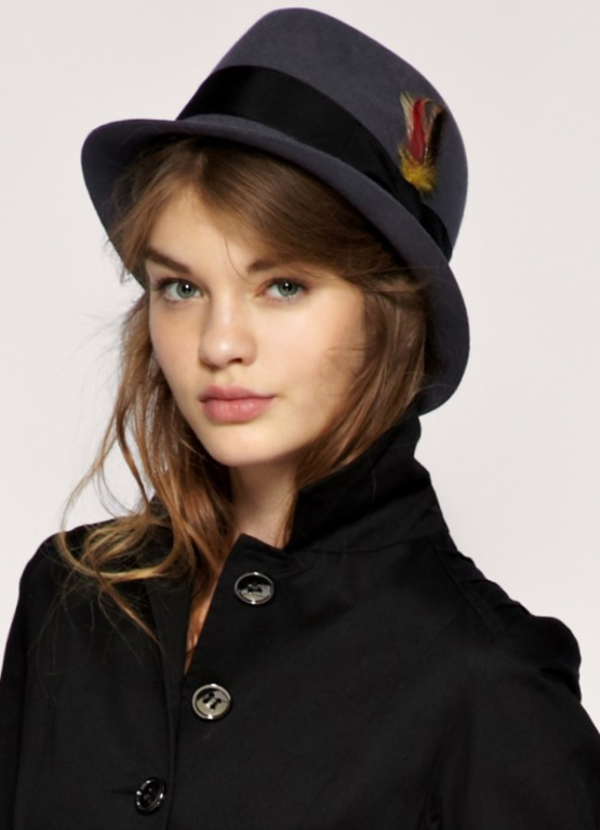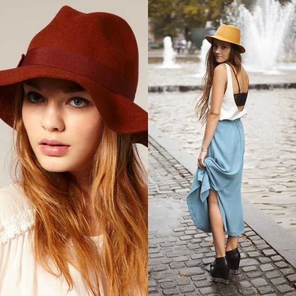Attractive Fedora is the most versatile hat. This accessory looks good on almost any fashionista. Young ladies who want to appear taller can choose a stylish model with a high top.
