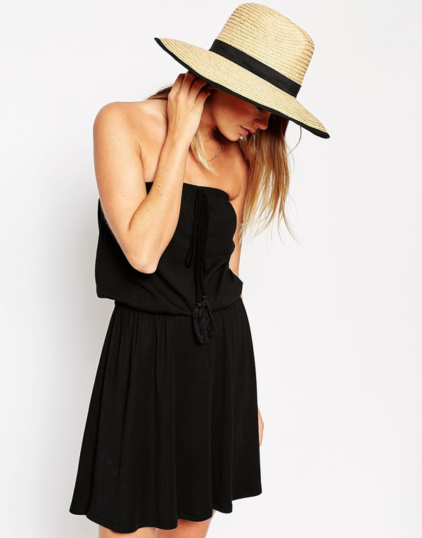 Free shorts, a simple T-shirt, comfortable flip-flops and straw fedora are perfect for going to the beach.