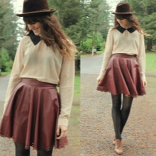 Ladies who are accustomed to increased attention of others are ideally suited to non-trivial leather hats. They look great with shorts or jeans, a variety of tops, blouses and t-shirts. Many ladies turn to the original tandems of leather hats and sarans (dresses), but such kits are recommended to be supplemented with various accessories.