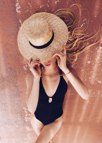 Straw models are often referred to when traveling to the sea. They are in harmony with many bathing suits. Such light and relaxed ensembles will not only look feminine, but also protect their owner from the scorching sun.