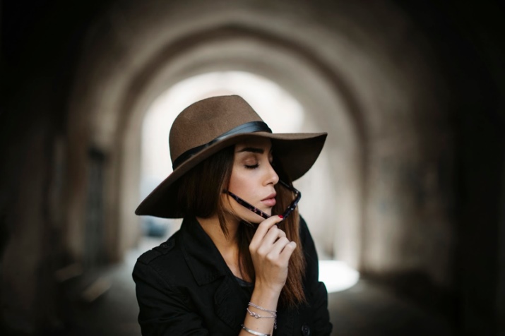Felt hats can be worn with romantic ensembles. For this ideal model of white or pale pink and feminine dresses. Such an original image will surely attract the attention of others.
