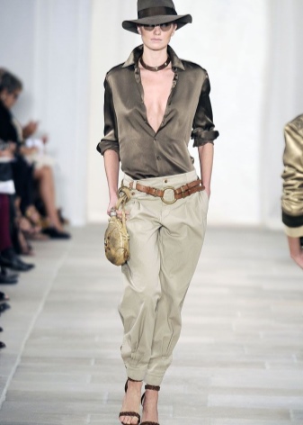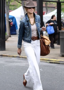 In addition, feminine hats are perfectly combined with skirts and dresses in the floor, as well as wide trousers. Having added an image of sandals on a flat sole, in such dress it is possible to go for a walk around the city or excursion.