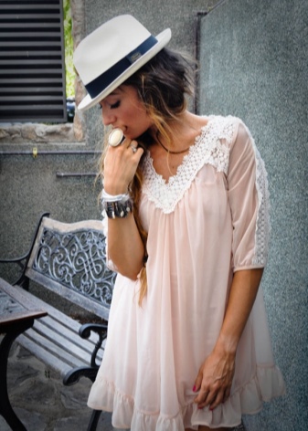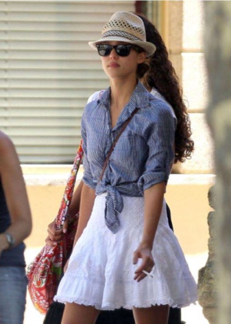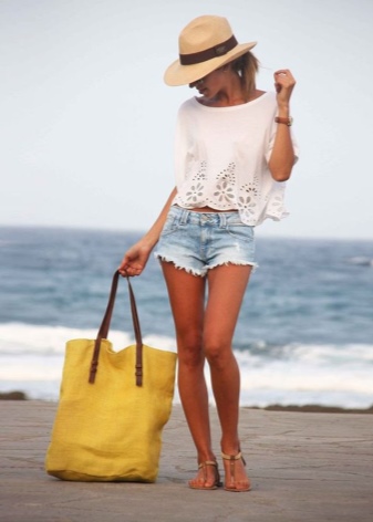 Vacation time at the seashore most often causes associations with this accessory. For beach promenades suitable wide-brimmed hats, as well as straw hats of various styles. When composing a beach image with a swimsuit, a light dress or a sundress, you should stick to the same color scheme for all details. The same applies to the pareo. Romantic image with this accessory has become a classic, so it always remains relevant.