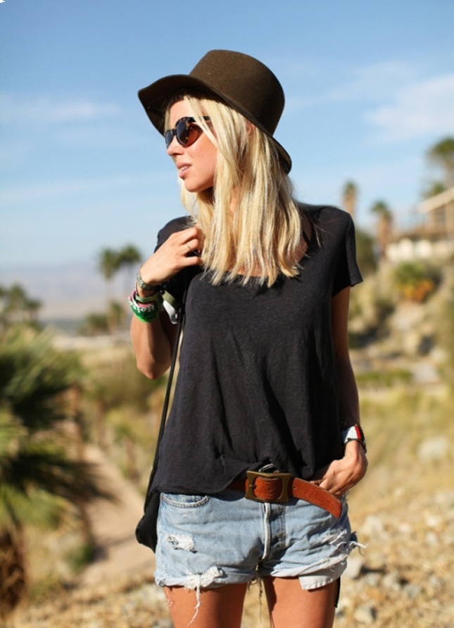 Cowboy hats traditionally look good with jeans and shirts. However, such a bright wardrobe detail can be chosen as the main accent for the whole image, wearing it with shorts or even a short dress. Female images, built on the contrast of brutal accessories and romantic frivolous dresses, look very bold and sexy.?