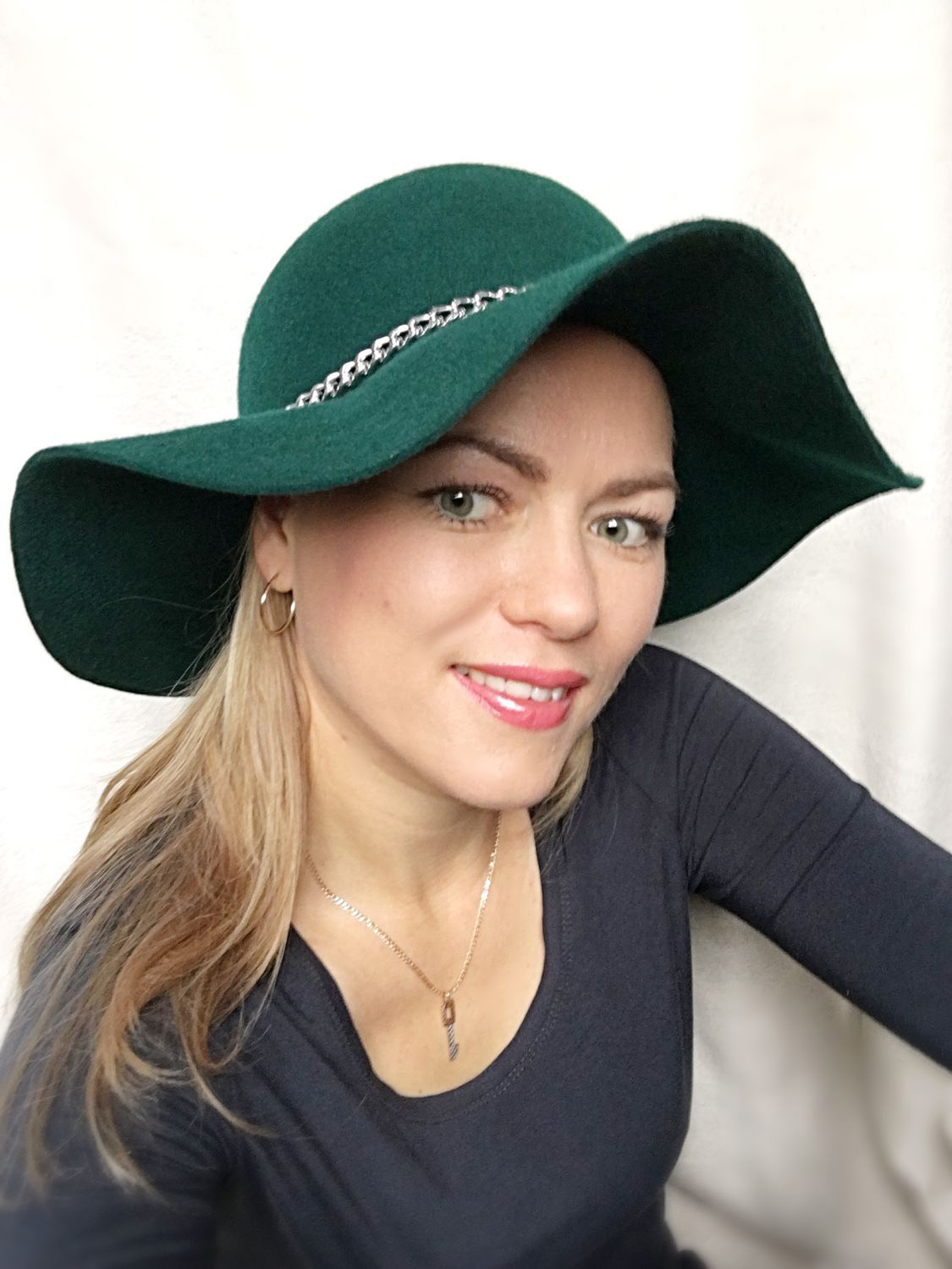 - Ladies with a square face should better avoid accessories with a high crown. To soften the shape of the face, harmoniously wear wide-brimmed hats with a width of margins no wider than shoulders.