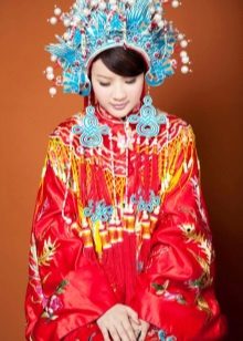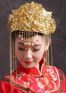 One of the most beautiful hats is a hat that a young Chinese woman puts on on her wedding day. The cap is made of pure silver and decorated with the image of a long-tailed bird. Such a piece weighs about 10 kilograms, and in order to purchase it for their daughter, many Chinese people start saving money almost from her very birth.