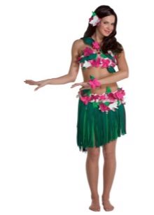 Hawaii is the sun, hot summer, exotic vegetation and colorful light clothing. It is very easy to present a Hawaiian costume even to those who are not strong in knowledge about the traditions of different nations of the world: these are light shirts, shorts, skirts and bustiers, painted with flowers, exotic vegetation, birds of paradise, etc. An essential element of the costume is a bright, fragrant wreath of flowers that is worn on the neck. As for the decoration of the head, most often it is either a large fragrant exotic flower that adorns the woman’s hair, or a wreath of flowers.