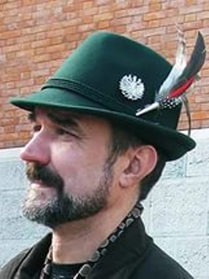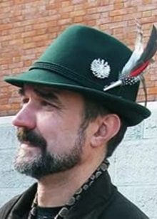 Hat with a crown in the form of a trapezoid and a small longitudinal fold. Her narrow fields are tucked on the sides and back. The traditional hat of the Alpine region is made of soft dark green felt and decorated with a twisted cord, tassel or feathers. Depending on the social position occupied, such a hat could be sewn from different materials and be decorated with a usual green thread or golden cantle.