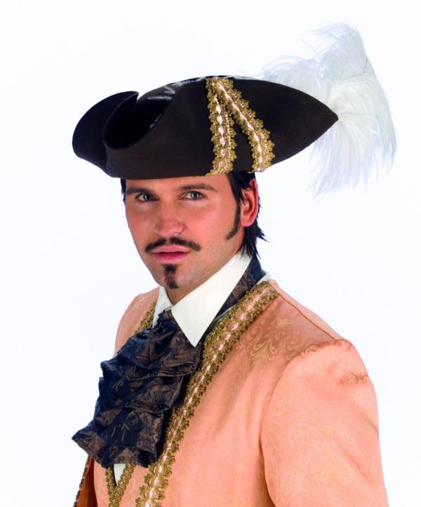 The traditional German men's hat had a small neat shape and curved at the sides and behind the field. The lace around the crown and a small bunch of bird feathers were used as decoration.