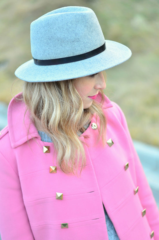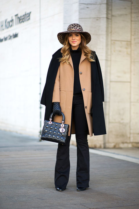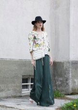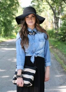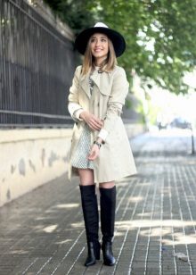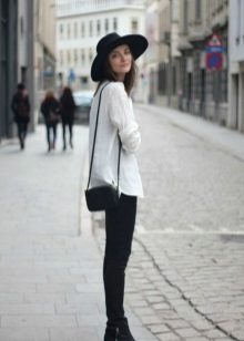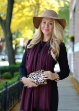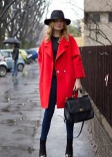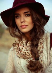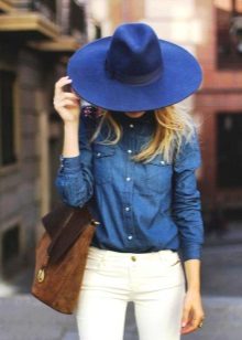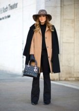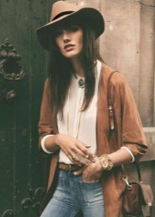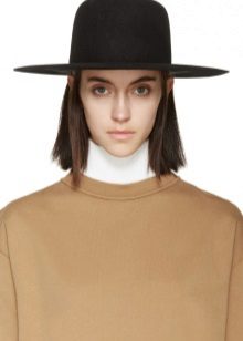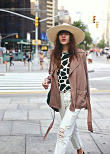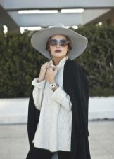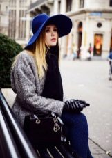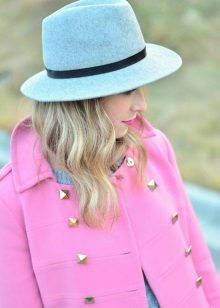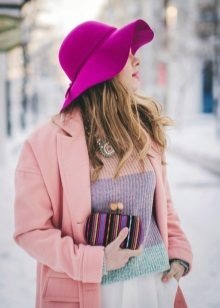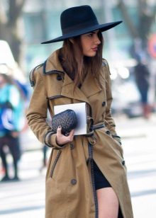 - With a coat. A stylish coat will blend in perfectly with a wide-brimmed felt hat. This is not only beautiful, but also a fairly practical outfit that will not let you freeze. In addition, the wide brim of the hat will be able to protect against the sudden collapse of the rain, while you take out an umbrella or seek reliable shelter.
