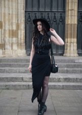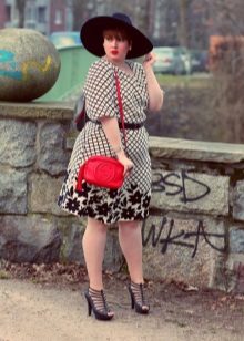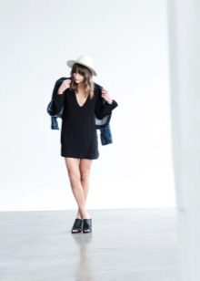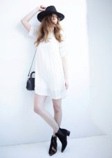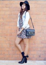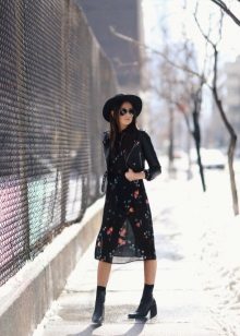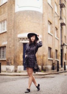 - With a dress. Autumn can not do without a warm knitted dress. Wear it with tight tights, throwing a cozy cardigan on top. Complement your look with a wide-brimmed hat, a small bag and brutal ankle boots. If you want to choose a model with heels, it should be thick and steady.
