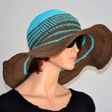 Knitted hats can be varied: with hard or soft brim, openwork or with a continuous pattern. They are knitted from different types of yarn, but most often cotton or linen threads are used. They hold their form perfectly, and in the case of “disobedience”, they are easy to starch. This will make the fields more rigid so that they do not hang down much.