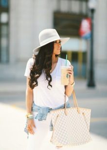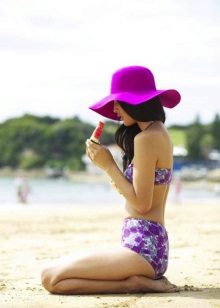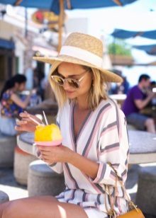 In the summer, many girls wear beach hats (Beach Hat), made of straw or light fabric. These are hats with straight or slightly curved fields and crown of any shape. They serve as reliable protection not only for the head, but also for the bare neck and shoulders, which are at risk of getting burned under the rays of the scorching sun.